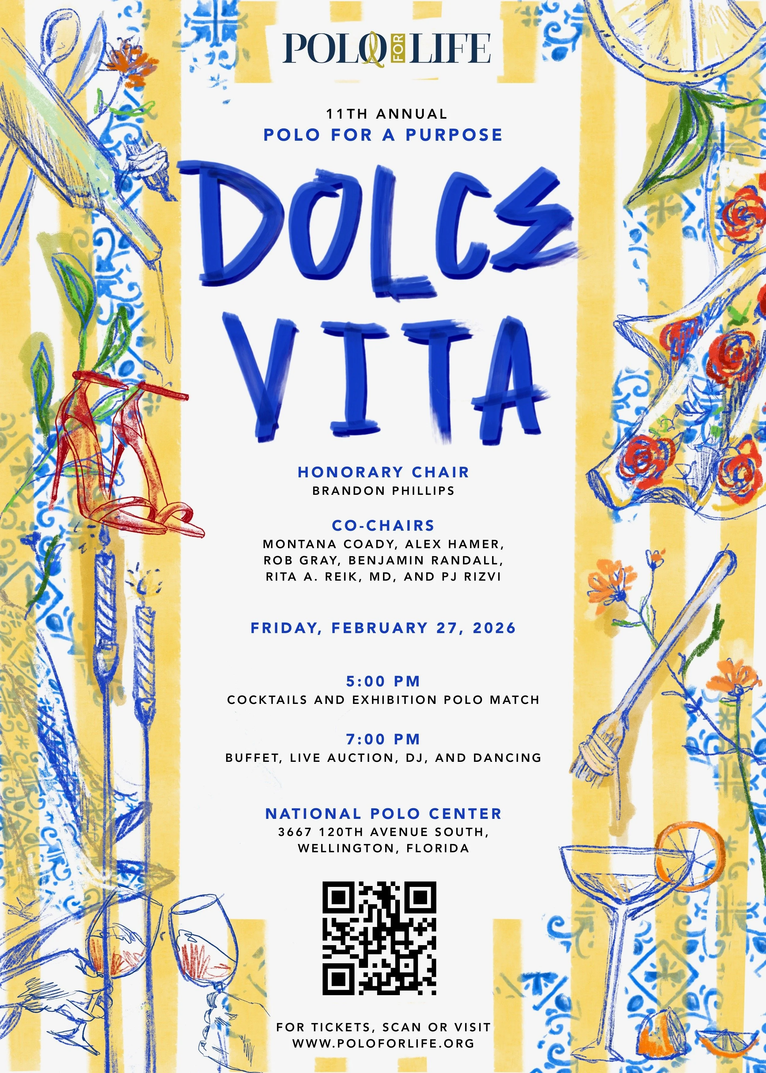 This year’s Polo For A Purpose will be held on Friday, February 27, 2026 at the National Polo Center in Wellington, FL. Guests will gather at the 7th Chukker – the premiere spot to watch the fast-paced polo match, enjoy cocktails and mingle with guests, as the sun sets in the Florida sky. Following the polo match, guests will be invited to a poolside reception featuring an array of Italian culinary offerings, including assorted antipasti, suppli, fine cheeses, gourmet pastas, salads, wines, gelato, and more. The evening’s program will feature distinguished entertainment, as well as a live auction presenting exclusive items and experiences. The celebration will conclude with music provided by a DJ and dancing beneath the stars. Polo For A Purpose is an evening to remember, filled with entertainment, delicious food, fun and a shared commitment to help. Your participation and contributions will go a long way to making a difference to south Florida families fighting pediatric cancer to save their child’s life.
